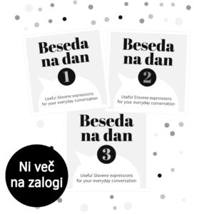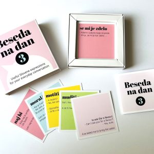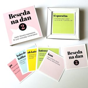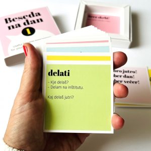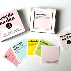 V tem paketu se nahajata dva kompleta po 50 kartic (Beseda na dan 1 in Beseda na dan 2), na katerih so zbrani:
